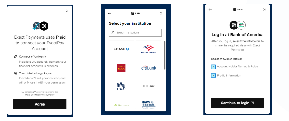 a. Verify Instantly: Plaid will prompt you to login to the bank account to validate your account: